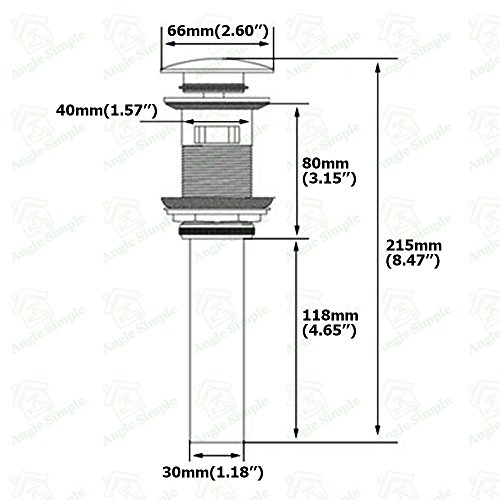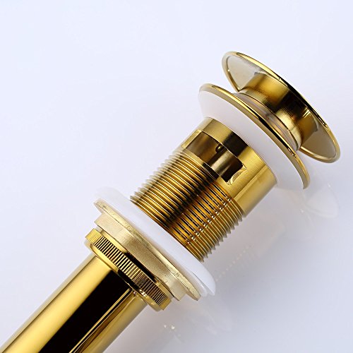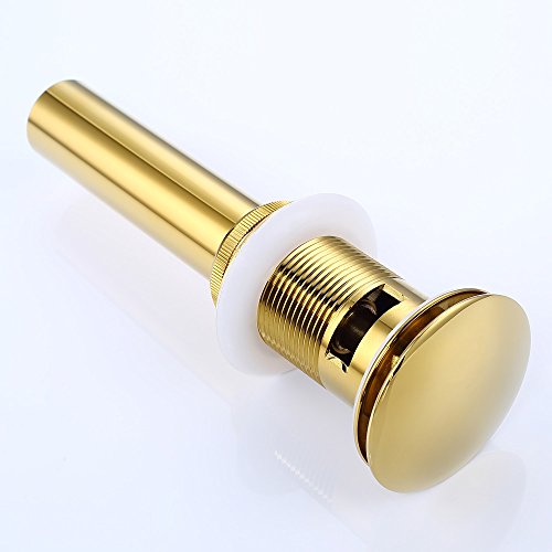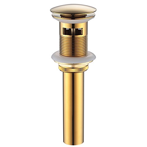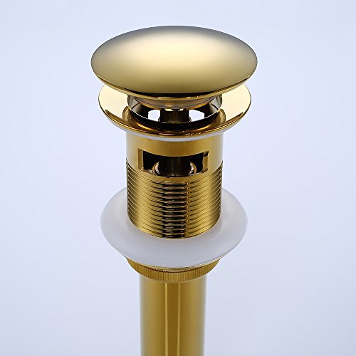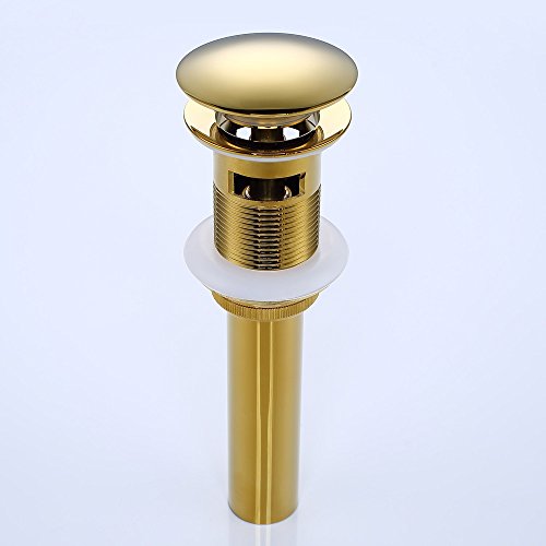 Vanity Vessel Sink Drain, Angle Simple Brass Pop Up Drain Stopper With Overflow Bathroom Sink Drain Stopper Lavatory Drain Assembly, Gold