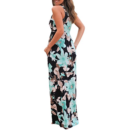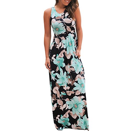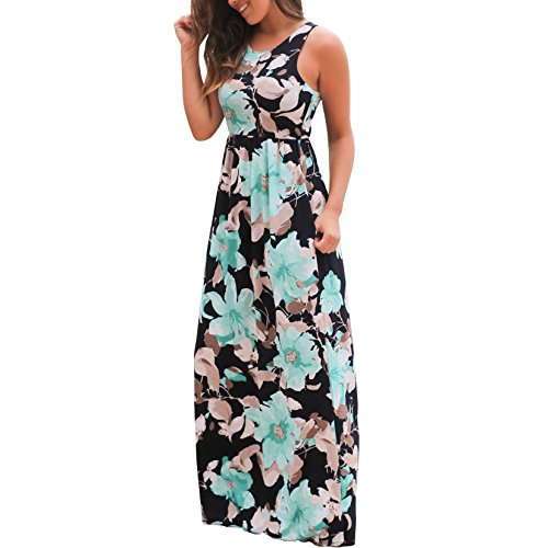 Sleeveless round neck, Empire waist, Floor-length, Stretchy, Casual style with pockets hawalian dress