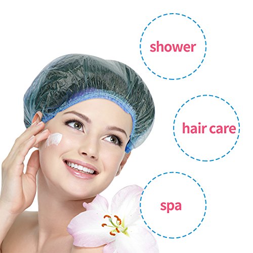-. Title : Shintop Disposable Shower Caps, Pack of 100 Individually Wrapped with Large Elastic Bath Cap for Home, Hotel, Hair Salon and Spa (Blue)