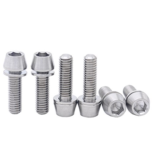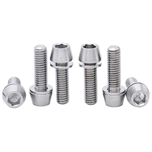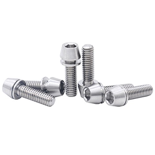 MCTi 6 Pieces Mountain MTB Bike M6x20mm Titanium Allen Hex Tapered Head Stem Bolts Screw 6AL/4V Gr5 with washer (TI)