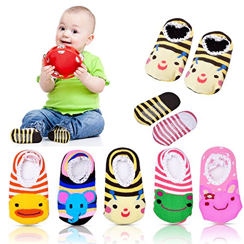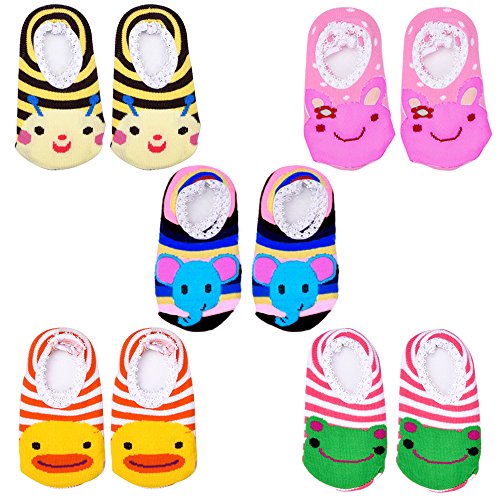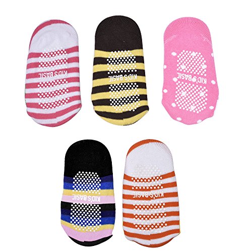 -. Title : 5 Pairs Baby Stripes Anti Slip Skid Socks No-show Crew Boat Sock for 5 - 24 Months Toddler