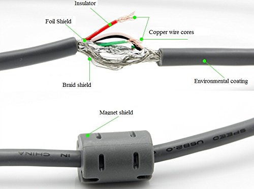 Corrosion-resistant Ni-plated copper contacts, foil/braided shielding and aluminum under-molding for long-term performance (without noise or signal loss). Full USB 2.0 capability, including 480 Mbps data transfer speed.