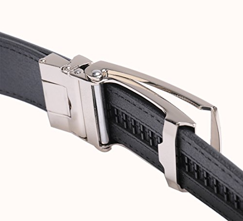 The belt is easy and simple to use. Lift the buckle and it will release. Slide the belt into the buckle and it will lock. The belt is top grain with beautiful natural skin texture, bright soft and smooth for the belt. You will get many compliments and confidence with the belts. 365 days free return and refund.