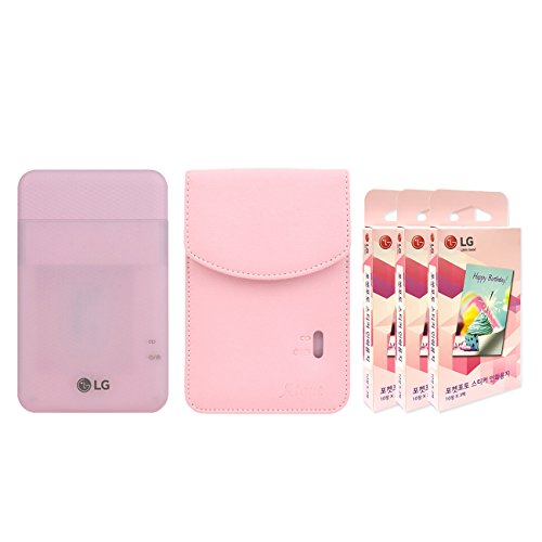 LG PD261 Portable Mobile Pocket Photo Printer [Pink] + Zink Sticker Paper 90 Sheets + Atout Premium Synthetic Leather Case [Pink] With Gift USB Cable [International Version]