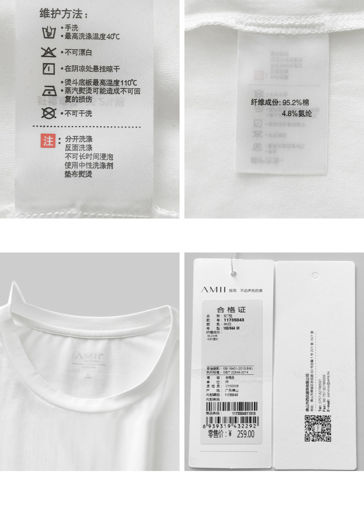 | 洗涤标准: | 不可浸泡悬挂晾干不可干洗110℃以下垫布熨烫不可漂白40℃以下手洗 |