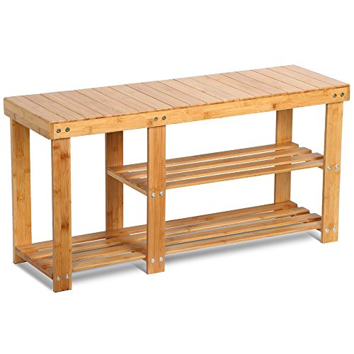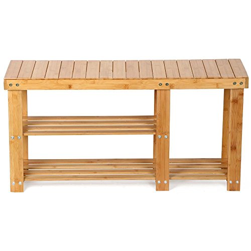 -. Title : Topeakmart Shoe Storage Bench Rack Shelf Organizer Natural Bamboo 2-Tier Durable Functional