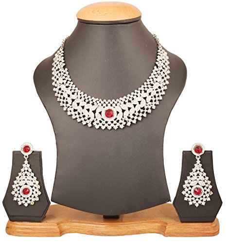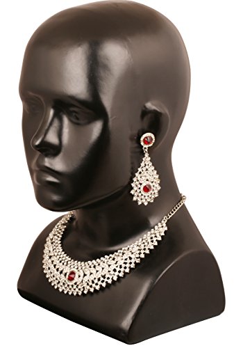 -. Title : Touchstone white tone Indian bollywood sparkling white rhinestones bridal jewelry necklace set for women