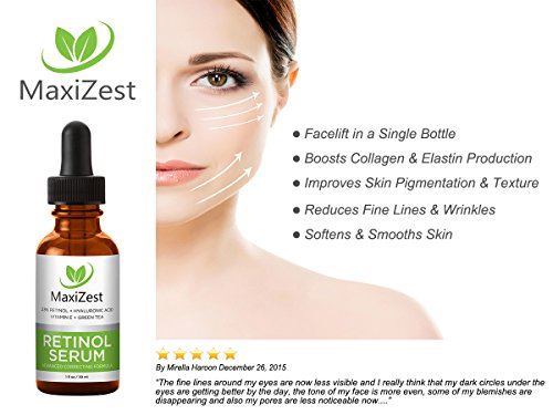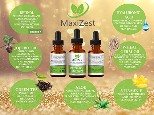 If you're serious about turning back the clock on your skin and want to experience a smooth, timeless, youthful and radiant appearance, then MaxiZest's 2.5% Retinol Serum is for you!