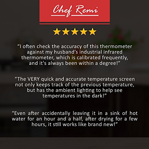 LIFETIME GUARANTEE - The Chef Remi Cooking Thermometer comes with a working battery, full usage instructions and a 100% Money-Back Lifetime Guarantee. Try It RISK FREE Today!