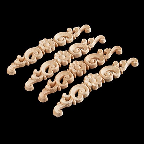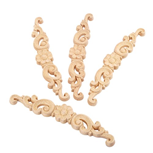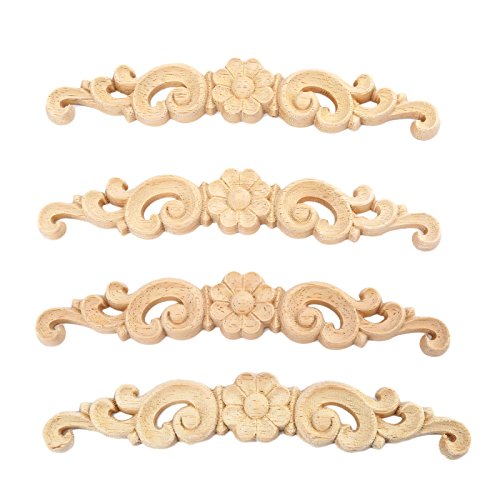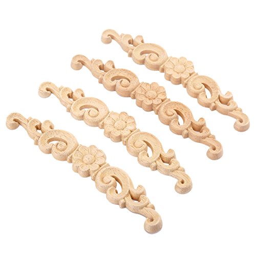 4pcs 16x3cm Wood Carved Long Onlay Applique Unpainted Flower Door Decor European Style