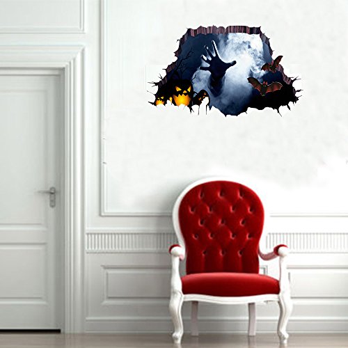 -. Title : 3D Halloween Horror Wall Decor Vivid Ghost Hand Pumpkin Bat Scratching the Wall Cracked Floor Scary Wall Sticker Decal Removable Home Decoration Art Mural Wallpaper