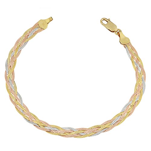 -. Title : 10k Tricolor Gold Five Braided Herringbone Bracelet (5.3mm , 7.5 inch)