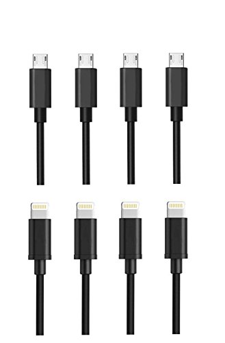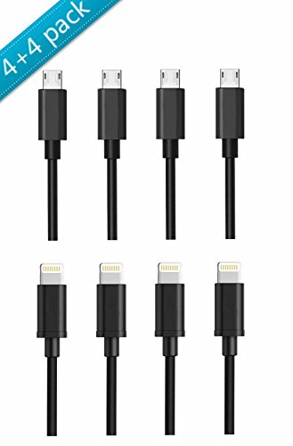 FLECK Short 0.2m/8.5in USB Cable 4 Apple Lightning Cables + 4 Micro-USB Cables for All Apple Lightning Devices and All Micro-USB Devices( 4 Lightning cables+ 4 Micro-USB cables( Black))