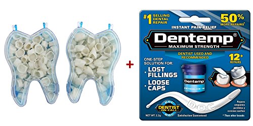 100 PCS Mixed Dental Temporary Crown Kit Anterior Front & Molar Posterior + Dentemp Maximum Strength Dental Temporary Cement Loose Caps Repair