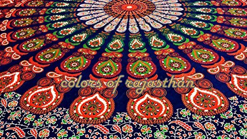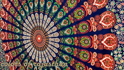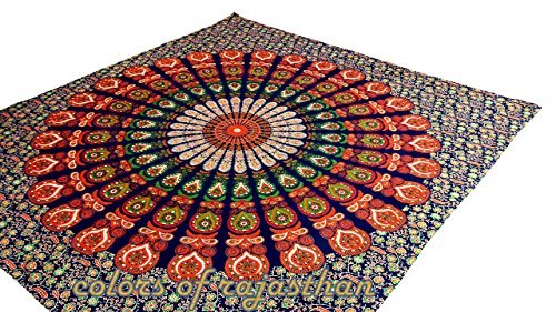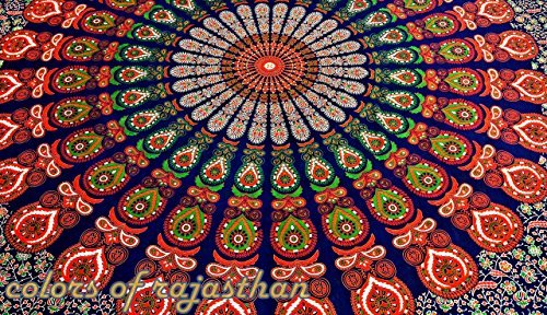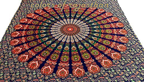 These sheets are made in Jaipur, India . These beautiful bedspread or Tapestry are screen printed on cotton cloth by using traditional Rajasthani methods . They are perfect to be used as bed sheet or Tapestry . **Please note that although every effort is taken to ensure the accuracy of the photographs, there can sometimes be slight variations in color due to lighting & computer / monitor settings.** This gorgeous piece of art can be used as: -Tapestry or a Wall Hanging. -Bedspread -Bed Cover -Table Cloth -Curtain - Dorm Decor - Picnic Sheet PRODUCT SPECIFICATION: # Design: Mandala Print Tapestry / Bed Cover . # Fabric: 100% Cotton, Screen Printed Fabric, Vegetable Colors. # Usage: Bedspread, Tapestry , Wall Hanging , Table Cloth # High Quality Construction # Size: ( 95 X 85 inches) # Color: Multi # Washing: Dry Clean Or Machine wash cold ---------------------------------------- ---------------------------------------- # Actual colors may vary from those shown due to the nature of photography and monitor color settings. # Because of the unique and handmade nature, the measurements above may be differ a bit from the one you get . ---------------------------------------- ----------------------------------------