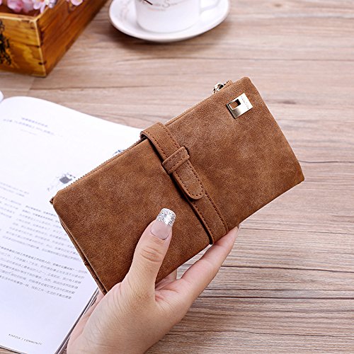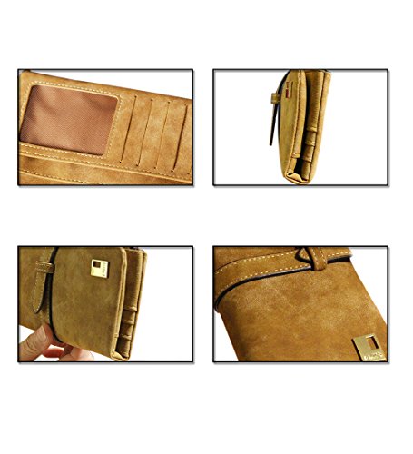 -. Title : ALALEI Womens Genuine Leather Clutch Wallet, Ladies Credit Card Cash Holder Purse with Gold Color Coated Metal Zipper (coffee)