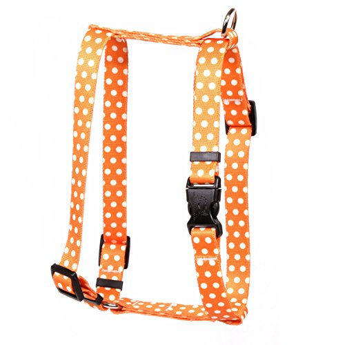 Studio : Yellow Dog Design Publisher : Yellow Dog Design Binding : Misc. Product Description This is the Orange Polka Dot Roman Style "H" Dog Harness - Size Large - 1 Inch Wide and fits Chest Circumference of 20 to 28 inches from Yellow Dog Design, the roman, or "H", harness is perfect for dogs with necks that are larger than their head or dogs that pull. Made right here in the USA and provides more control without a choking effect. SIZING: This dog harness utilizes a quick clasp closure, also called a side release clasp. Sizing is given as a range of chest widths. Measure your dog around the widest part of its chest, usually just behind the front legs. If you are shopping for designer, affordable dog accessories, then look no further. These durable, guaranteed to last dog products have no rough edges, no threads to fray or break, no problem going in the wash, and no stress getting them on or off your dogs. 0