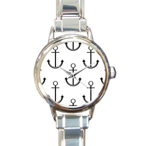 -. Title : Christmas Day Gift Seamless Black and White Background Pattern of Ships Anchors Suitable for Nautical Round Italian Charm stainless steel Watch