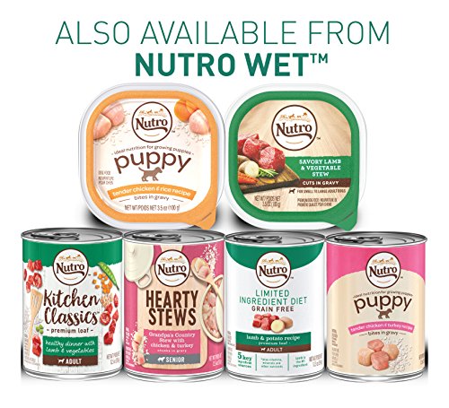 Get ready to see your dog do a happy dance when you open a tray of NUTRO Cuts in Gravy. This soft, premium wet dog food is full of flavors and nutrients dogs big and small go crazy over. Each recipe is made in the USA. High-quality protein is the foundation of this delicious recipe to help keep your dog healthy and strong, and is crafted for healthy skin and coat. Plus, NUTRO Cuts in Gravy ingredients are carefully sourced from a trusted network of farmers and suppliers (without chicken by-product meal, soy, or artificial flavors or preservatives), meaning you can feel confident you’re feeding your pup a healthy, balanced diet. Not only are these recipes great for your pup, they’re great for you, too: The easy-open dog food trays are a much more convenient, no-mess way to feed your best friend (a great alternative to traditional canned wet dog food) for a tasty meal every time. Order a 36-count variety pack of NUTRO Cuts in Gravy dog food trays today and prepare for a future full of happy doggy dances.Feature