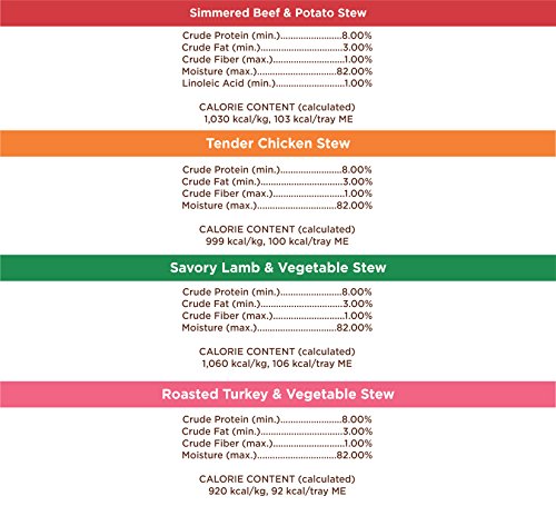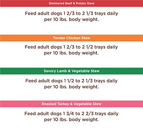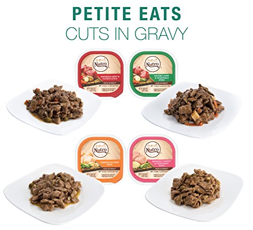 Variety pack contains (36) 3.5 oz. trays of NUTRO Cuts in Gravy Wet Dog Food, with 9 Tender Chicken, 9 Roasted Turkey & Vegetable, 9 Simmered Beef & Potato, and 9 Savory Lamb & Vegetable Stews