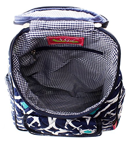 -. Feature : Material:Quilted Microfiber / *Quilted Geometric Anchor Backpack / *Front Magnet Button Pocket / *Gingham Lining / *Monogram Ready Material ( we do not monogram)