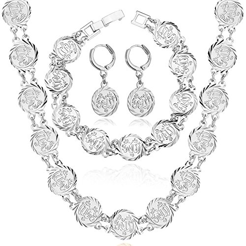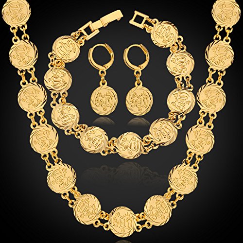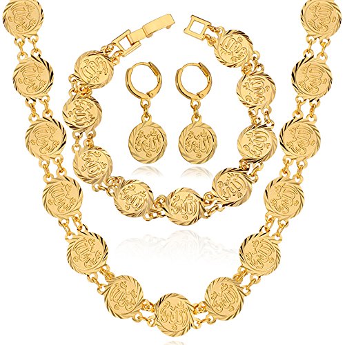 -. Title : Islam Allah Chain Necklace Bracelet Earrings 18K Gold Plated 3 Pieces Muslim Jewelry Set