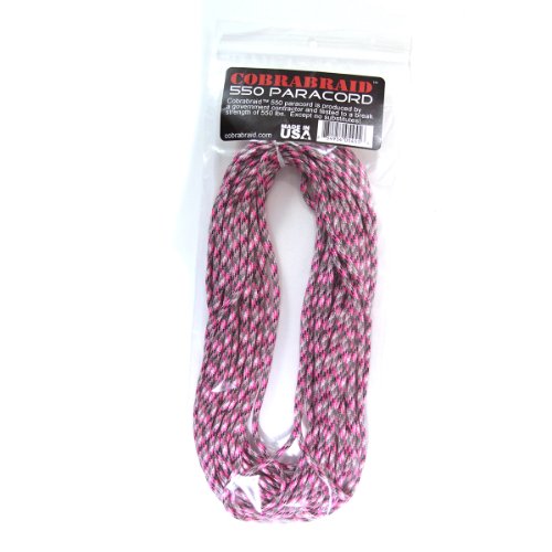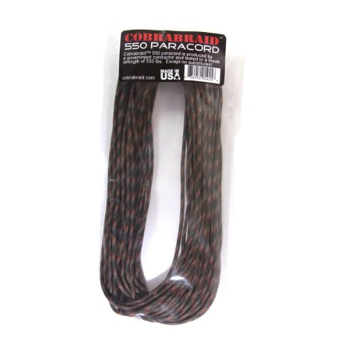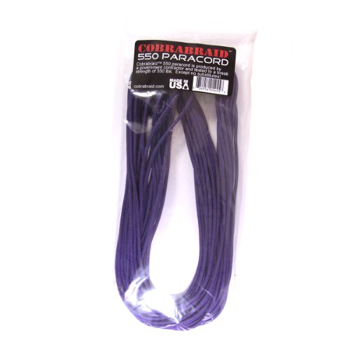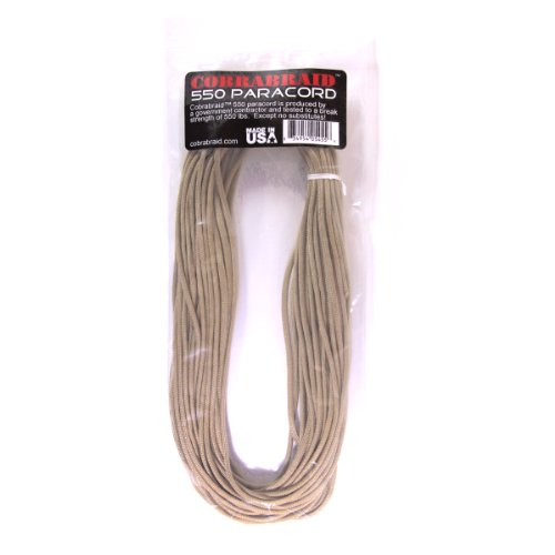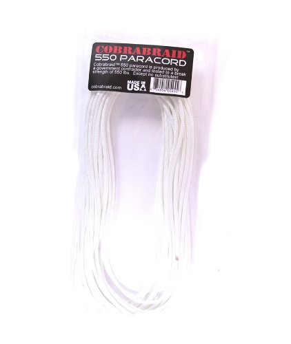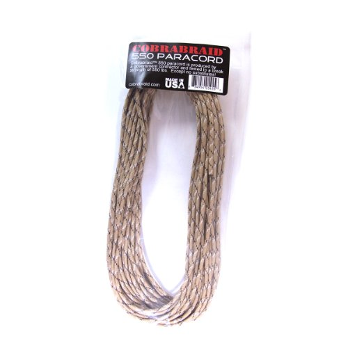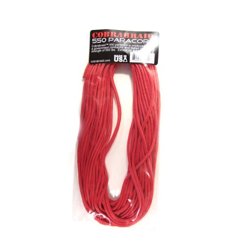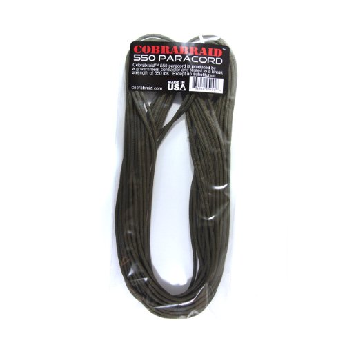 100-Feet of Cobrabraid brand USA 550 survival paracord. Cobrabraid 550 Paracord Gear utilizes paracord produced in the USA by a government contractor. Our paracord has 7 inner woven strands surrounded by a tightly woven sheath and exceeds all standards, with a break strength of 550+ pounds. Paracord is the ultimate survival tool. It can be used as a tie down, tourniquet, animal snare, boot lace, clothes line, fishing line and hundreds of other things Depending on the item, our products contain 4 feet to 100 feet of paracord. 550 paracord bracelets were born from the deserts of Iraq and originally brought to the U.S. by our soldiers. If you are found in an emergency situation where you need paracord, simply unwind your Cobrabraid gear.Feature