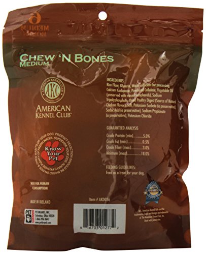 -. Binding : Misc. -. Brand : Pet Brands -. EAN : 0816703012772 -. Feature : Easily Digestible / Long Lasting Chew / Helps Promote Healthy Teeth and Gums / Made in Ireland -. Label : Pet Brands Inc. -. Manufacturer : Pet Brands Inc. -. Model : AKD036 -. MPN : AKD036 -. PackageQuantity : 1 -. PartNumber : AKD036 -. ProductGroup : Pet Products -. ProductTypeName : PET_SUPPLIES -. Publisher : Pet Brands Inc. -. Size : 3.25 x 7.25 x 10-Inch -. Studio : Pet Brands Inc. -. Title : American Kennel Club Chicken Chew 'N Bones, 3.25 x 7.25 x 10-Inch -. UPC : 816703012772