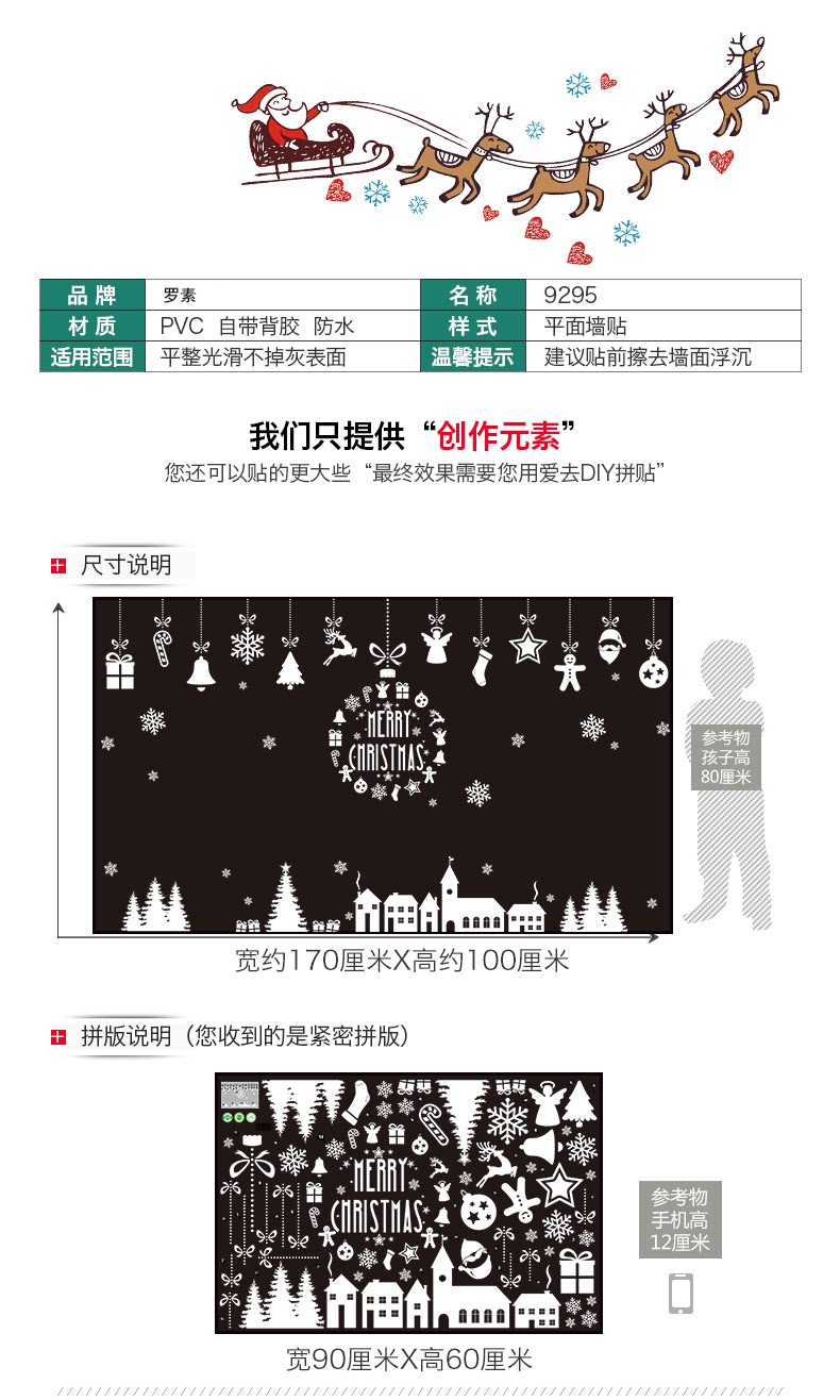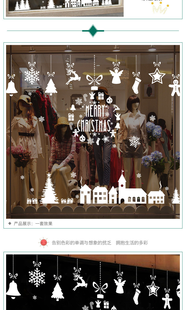 圣诞节挂饰贴纸场景装饰品玻璃窗花橱窗窗户贴纸防水自粘壁纸贴画