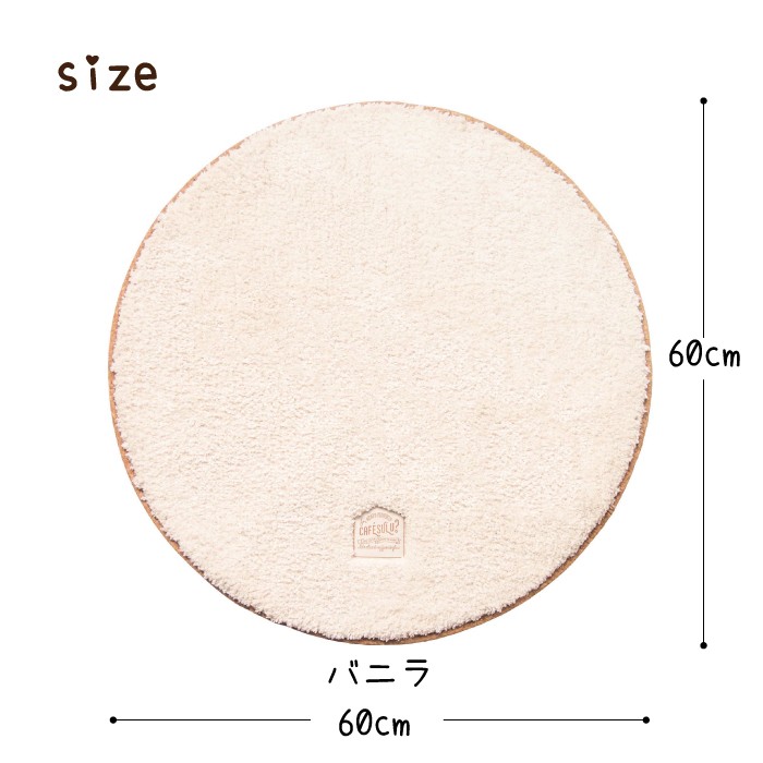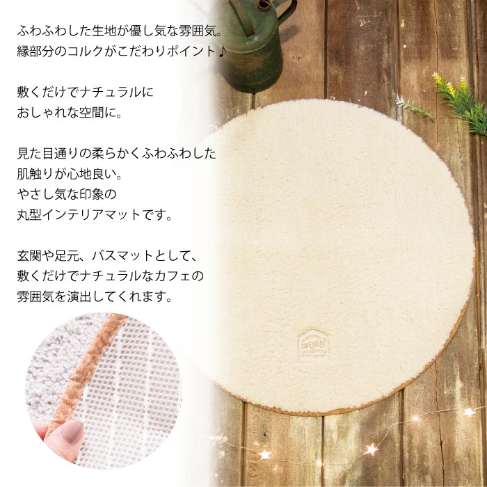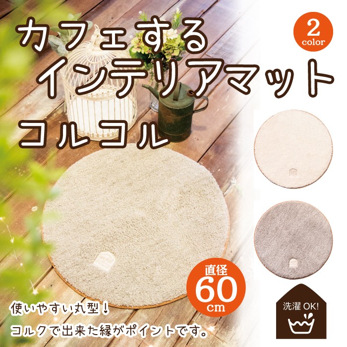 サイズ 約60cm 材質 パイル部/ポリエステル100% コルク生地部分/コルク素材 原産国 中国 使用上のご注意 マットの裏面にはすべり止め加工が施されているので、 塩化ビニール系の床材で長時間使用するとすべり止め加工の成分が反応し、 床材が変色することがあります。 目安として1週間ごとに使用場所を移動したり、 床面をふいたりしますと変色が防げます。 ホットカーペットや床暖房など暖房器具の上での使用は、 変色やすべり止めの成分が溶着するおそれがありますので絶対におやめください