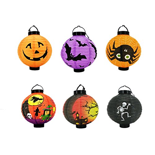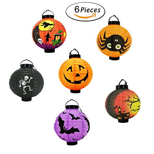 Studio : HUPLUE Publisher : HUPLUE Product Description Halloween Pumpkin Lantern Decorations Hot Decoration for Halloween Props - Skeleton Bats Jack-O Spiders - 6 Pack Foldable easy for decoration Mounted with a bulb inside Powered by 2 x1.5v AAA batteries (not included) ) Diameter: 20cm/7.87inch(approx.) Height:20cm/7.87inch(approx.) Quantity: 6 piece Brings you interesting creations that comes in 8" not scary lanterns that are guaranteed to get you in the mood for the Halloween ! Great choice for your indoor or outdoor Halloween decorations and comes with battery-operated LED lights that are sure to light up the night! You won't be disappointed with the scary designs of skeletons bats Jack-O and spiders that works great with kids! Package includes: 1 x White spider paper lantern 1 x Purple bats paper lantern 1 x Black skeletons paper lantern 1 x Orange Jack-O paper lantern 1 x Pumpkin Lantern 1 x Orange castle 0