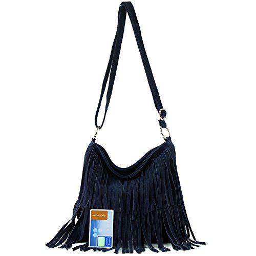 -. Binding : Textilien -. Brand : modamoda de - Made in Italy -. ClothingSize : siehe Beschreibung -. Department : Damen -. Feature : ** in vielen neuen aktuellen Farben erhältlich | schön verarbeitetes Wildleder Topaktuell mit Fransen auf der Vorderseite ** / ein geräumiges Hauptfach mit Reißverschluss | ein seitliches Reißverschluss-Innenfach sowie ein Außenfach mit Reißverschluss auf der Rückseite für z. B. Ihr Smartphone geeignet | Innenmaterial aus Stoff - Metallteile silberfarben / Maße ca.: Länge = 29 cm (am Boden gemessen | 26 cm (am Oberrand gemessen) | 21,5 cm (Reißverschlusslänge) x Breite = 2 cm (unbefüllt) x Höhe = 26 cm (bis Oberrand gemessen) | 22 cm (Füllhöhe bis Reißverschluss gemessen) | Gewicht ca.: 0,39 kg / verstellbarer, nicht abnehmbarer Schultergurt ca. 63 - 122 cm Länge | zuzügl. 7 cm Befestigungsringe = 129 cm Gesamtlänge -. ProductGroup : Apparel -. ProductTypeName : BAG -. Size : siehe Beschreibung -. Title : ital. Ledertasche Umhängetasche Fransentasche Schultertasche Beutel Damentasche Citytasche Girl Echt Wildleder T125
