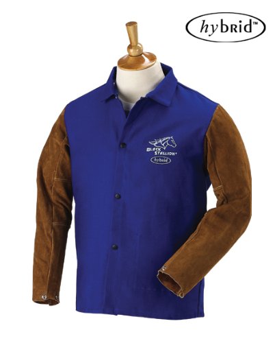 BLACK STALLION Hybrid 9 oz. FR and Cowhide Welding Coat - 30" Royal Blue/Brown - XXL
