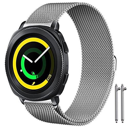 -. Title : Magnetic Wristband for Samsung Gear Sport Watch, AFUNTA 6.7" - 8.1" Stainless Steel Milanese Loop Replacement Watch Band for Gear Sport Smart Watch - Silver