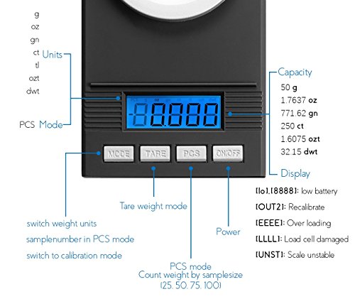 - Accurate Digital Milligram Scale: This accurate digital milligram scale can weigh up to 50 grams with a high precision sensor system. This scale has a thousandth of a gram accuracy (0.001g) so it is extremely precise