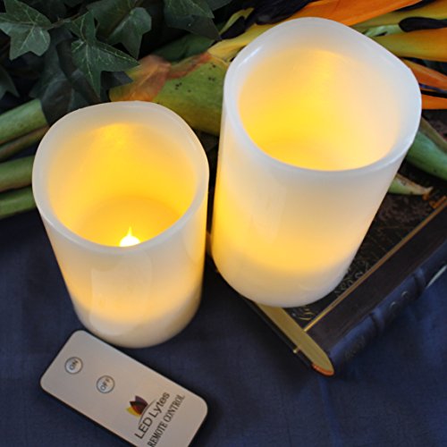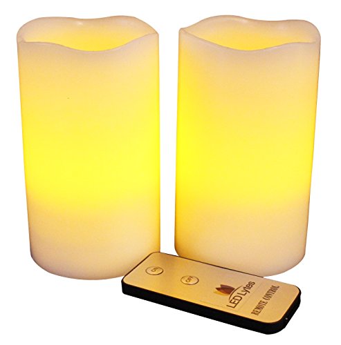 CREATE THAT ROMANTIC AMBIANCE with unscented real wax flameless flickering LED pillar candles that include an on/off remote control...they are perfect for Weddings and Parties...or a quite evening for two. We just want to add some faux candlelight to your life without the danger of fire =}