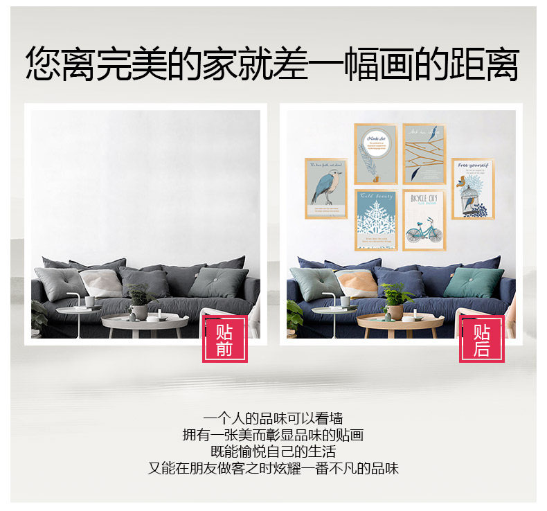 欧式简约相框画墙贴创意照片墙贴画客厅墙上贴纸房间装饰自粘壁纸