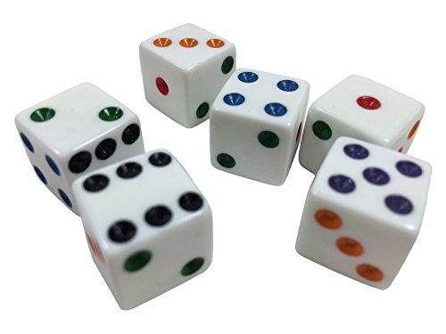 Yellow White (red pips) White (green pips) White (colored pips) White (blue pips) White Red (white pips) Red (black pips) Purple Pink Medium Blue Ivory Hot Pink (white pips) Green Dark Blue Blue (pink pips) Black (with red pips) |