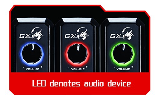 THUNDERCLAP 2.1CH GAMING SPEAKER SYSTEMA rich, deep, solid sound quality for excellent bass performance and clear and detailed mid and high range frequencies for realistic sound. PULSATING LED GOES WITH DYNAMIC BASS The backlight blue LED goes with the rhythm of powerful heart-beating bass, just like being in a real battle field. MULTIPLE INPUTS Make everything you listen to sound better with convenient RCA and 3.5 mm inputs for music, movie, and gaming devices.Feature
