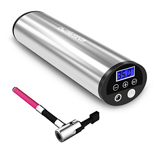 ENGREPO 12V Electric Portable Air Compressor, Digital Tire Inflator Build in Rechargeable Battry. Tire Pressure Monitor and Preset. Pump to 150 PSI - Silver