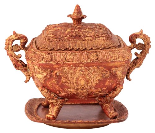 Essentials Décor Entrada Collection Square Polyresin Bowl with Plate, 10 by 9 by 14-Inch