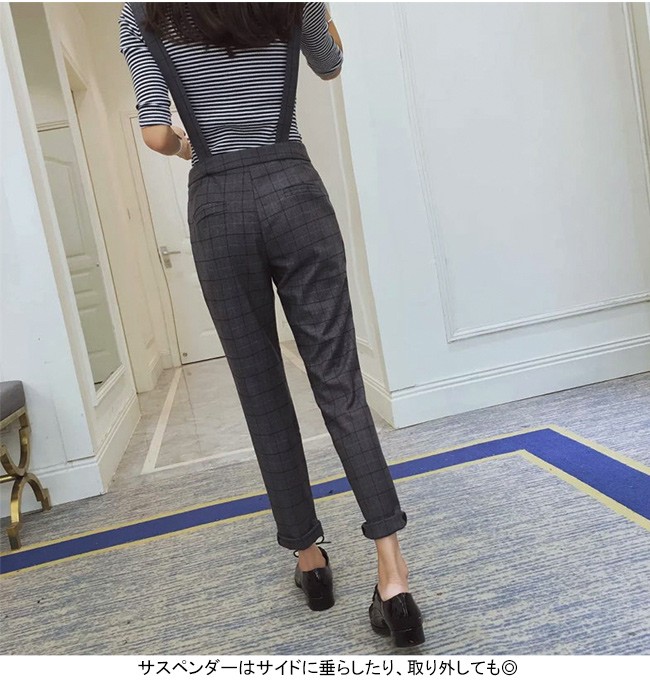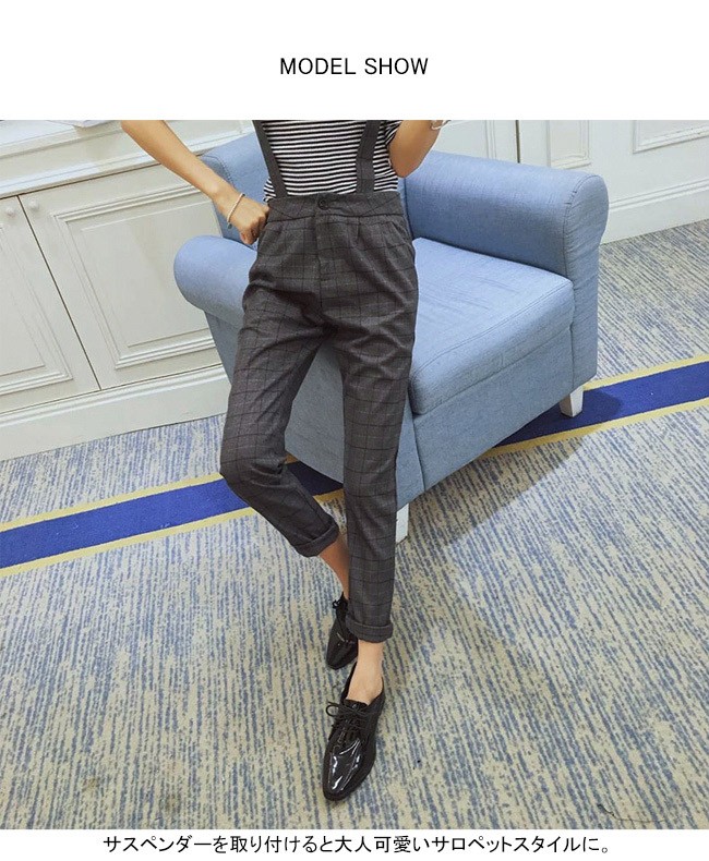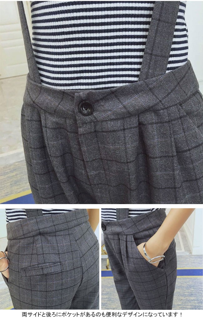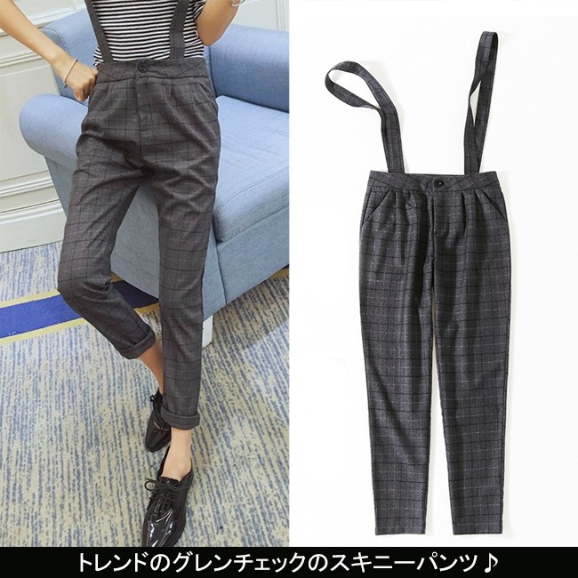 | 商品名 | グレンチェックパンツ サロペット スキニーパンツ 2wayパンツ レディース ロング丈 グレンチェック 取り外しベルト オシャレ 2017秋新作 |