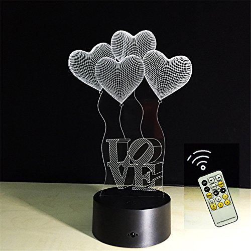 -. Title : ATD® Romantic Gift 4 Heart Love 3D Optical Illusion Touch Botton 7 Color Changing LED Night Light Desk Lamp 15 Keys Remote