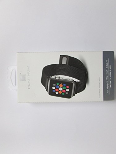 -. Title : Platinum - Magnetic Stainless Steel Mesh Band for Apple Watch 38mm - Black