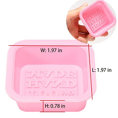 12pcs 100% HAND MADE Reusable Silicone Soap Mold Pink DIY Square Handmade Soaps Moulds Microwave, Oven, Refrigerator and Dishwasher Safe