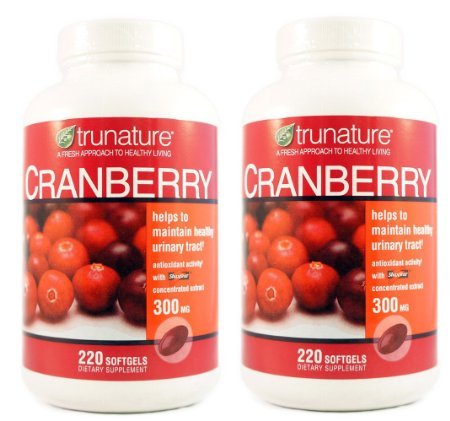 -. Binding : Health and Beauty -. Brand : TruNature -. Feature : Maintains Healthy Urinary Tract* / trunature Cranberry is made in an easy to swallow softgel form / Clinical research shows cranberry extract in capsule form helps to promote a healthy urinary tract, especially in women who experience recurrent infections / Cranberry has a long history of use primarily for supporting urinary tract health / Please read all label information on delivery -. Label : TruNature -. Manufacturer : TruNature -. ProductGroup : Health and Beauty -. ProductTypeName : HEALTH_PERSONAL_CARE -. Publisher : TruNature -. Studio : TruNature -. Title : TruNature Cranberry 300 mg with Shanstar Concentrated Extract - 220 Softgels per Bottle