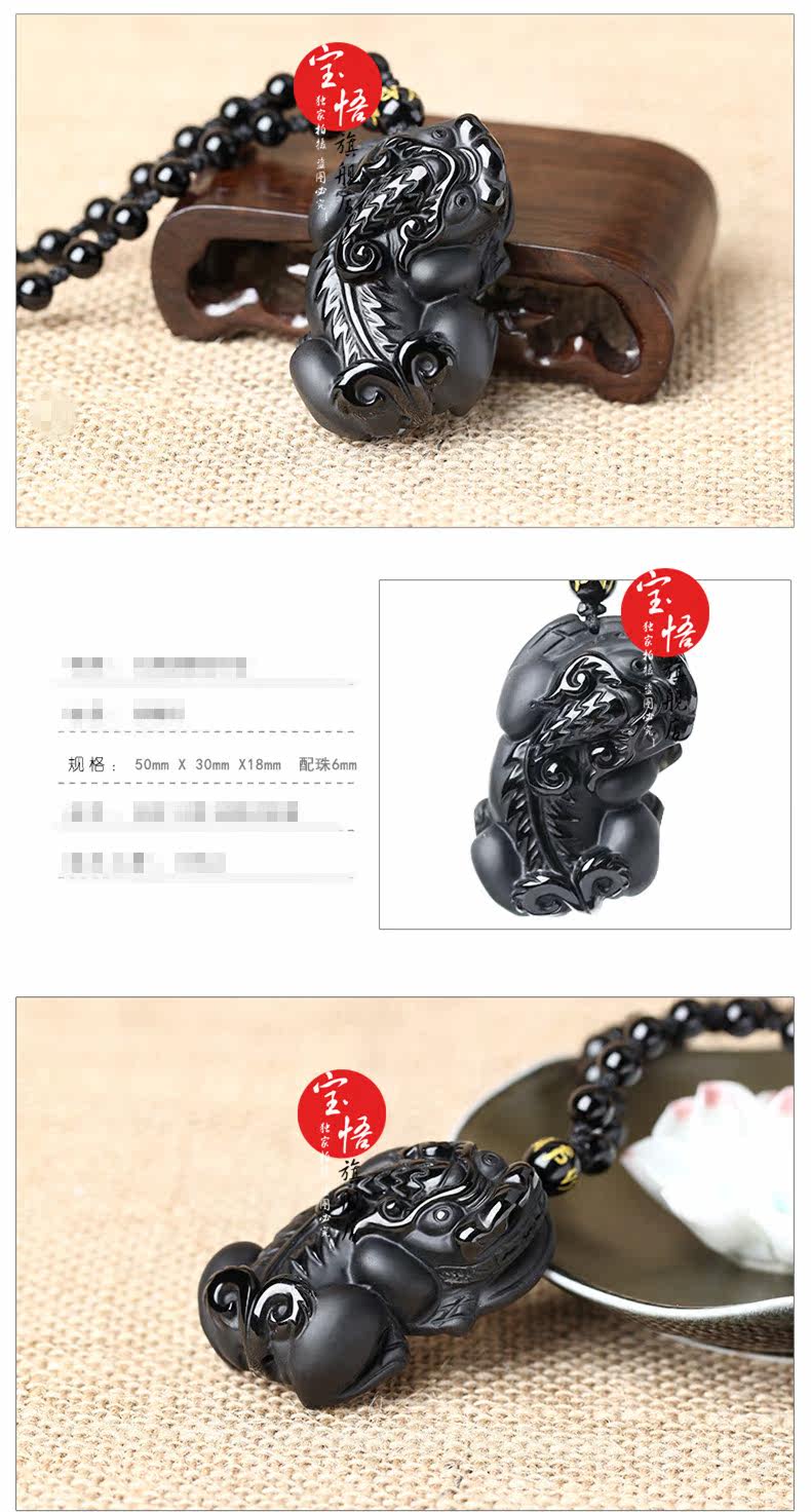 开光磨砂黑曜石貔貅吊坠大屁股貔貅项链