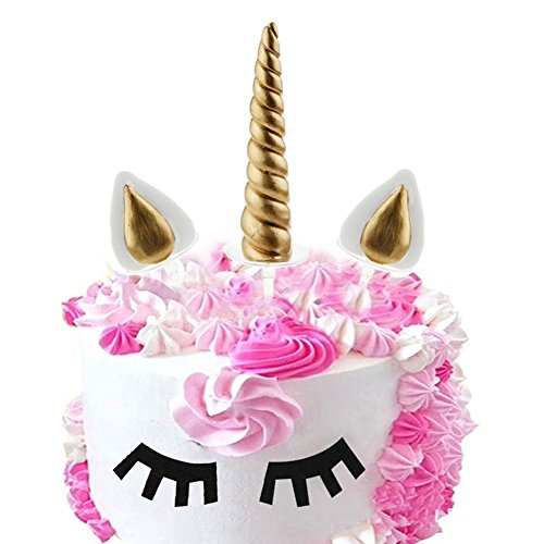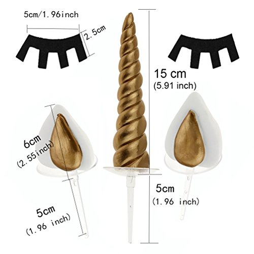 - Cake topper kit includes: Gold Unicorn Horn, 2 Ears and 2 Eyelash, ideal for an 8 to 10 inch cake to celebrate your child's unicorn theme birthday party!