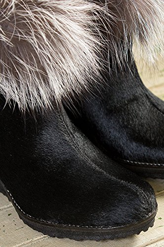 Studio : Overland Sheepskin Co. Publisher : Overland Sheepskin Co. Binding : Apparel Product Description The Katy masters the art of merging a glamorous design with a sturdy winter boot. Crafted of robust calfskin leather with its natural fine fur finish, these showpiece wedge boots are snow and water repellent and soled in non-skid rubber for good winter traction. A poofy crown of silver fox fur adds softness, warmth, and glam, while Italian shearling wool offers a plush lining for comfort and superb insulation. A matching ankle band with cool ornament detail finishes these feminine winter boots, designed to draw admiration. Inside zipper. Handmade in Italy. 0