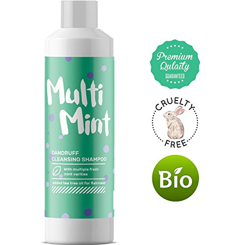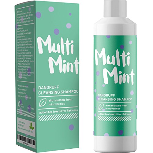 MultiMint Dandruff Shampoo for Women and Men Tea Tree Essential Oil, 2 kinds of Peppermint Oil, Jojoba Oil, Phytokeratin, Provitamin B5, Glycerin Promotes Hair Growth and Better Scalp Circulation Fights Hair Loss, Itching, Flaking, Acne, and Irritation Great For All Hair Types Including Curly Hair, Straight Hair, Wavy Hair, Fine Hair, Thick Hair Gently Detangles, Cleans And Nourishes Hair Sulfate Free, Paraben Free, Chemical Free, Cruelty Free, Dye Free, Phthalate Free, And Eco-Friendly Made In A Facility That Exceeds cGMP Standards 100% Money Back GuaranteeFeature